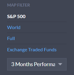 Finviz. com 이라는 사이트를 확인하면 S&P500, world, full, ETF 모든 주식을 한눈에 표로 볼수 있도록 지정 할 수 있습니다. 이 사이트에서 개월수를 지정하고 주식 시장을 보면 시장의 현재 분위기를 대략적으로 확인 할 수 있습니다.